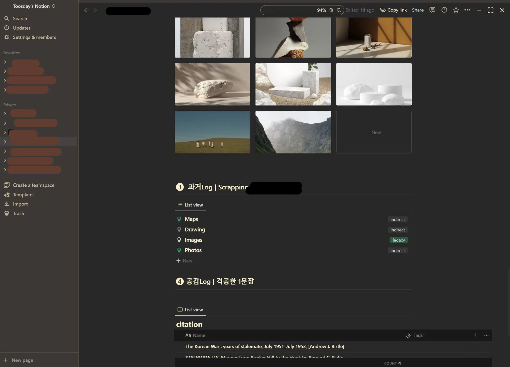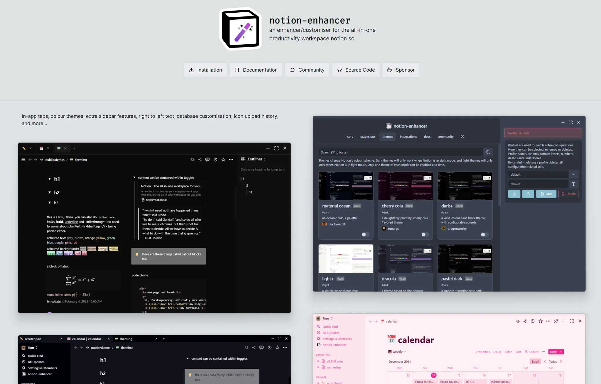 한동안 잘만 쓰다가 몇 달 전부터 엄청 느려지는 것도 그렇고, 화면 열기도 잘 안 되고, 노션 업데이트가 올라올 때마다 조금씩 잔고장이 나기도 하던 notion enhancer. (2022년 7월쯤부터 잔고장에 기본 노션으로 돌아왔다)