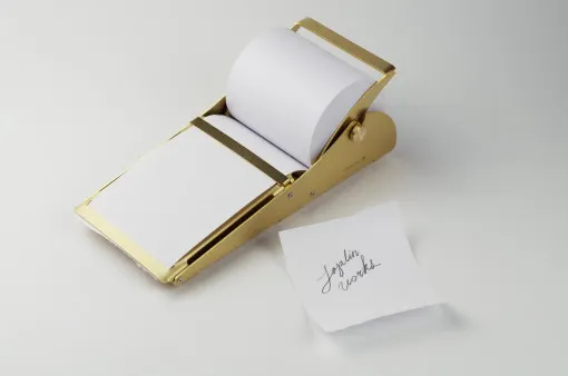 The perfect fit for my ideal stationery. Joplinworks' roll notepad exudes a vintage vibe and is highly versatile as you can cut it to your desired length. The design identity of the studio, which works with brass, is also brimming with creativity!